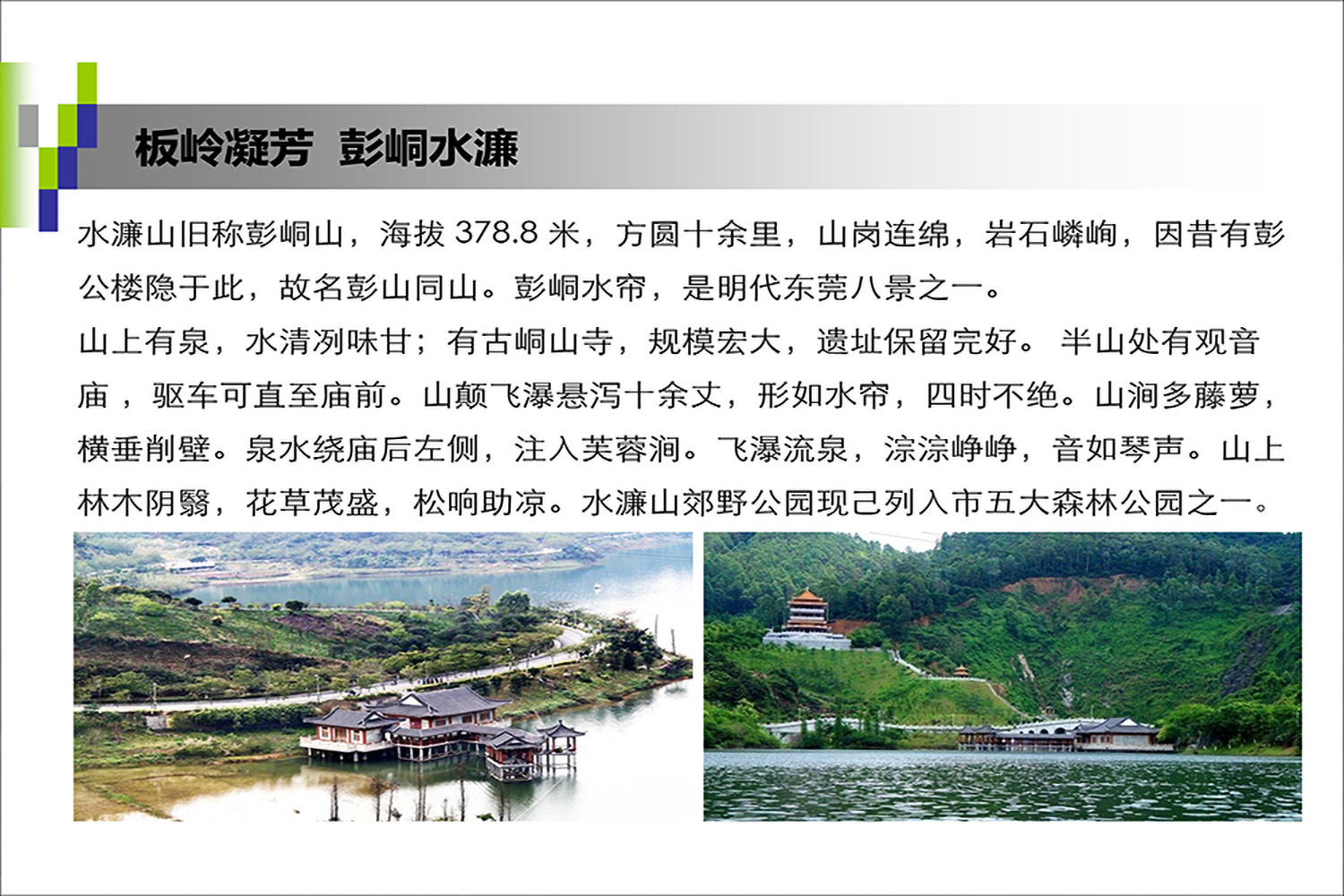 水濂山野战拓展基地位于拥有“东莞之肺”的东莞市南城水濂山森林公园内,占地30000多平方米,距广深高速、莞深高速出口仅10分钟车程,无论广州、深圳、惠州还是东莞的客户,1H内均可抵达。环境优雅、空气清新!可同时容纳1200人同时进行培训。培训基地拥有近360个床位的各式客房,30~300人不等的会议室4个,300人同时开餐的高规格餐厅3个以及可容纳600人的拓展基地。可满足不同客户拓展训练、真人CS、冬(夏)令营、亲子活动、场地拓展、野外定向、会务等不同方面的需求。