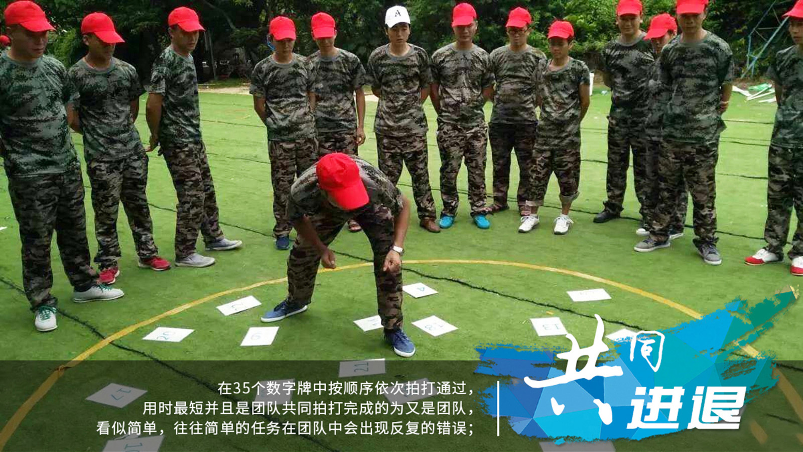 各组在分别有司令员、参谋长、士兵,来模拟战场指挥,只有司令员能说话,其他人员用肢体语言来指挥执行任务,每个角色都相当于我们在公司的职务。